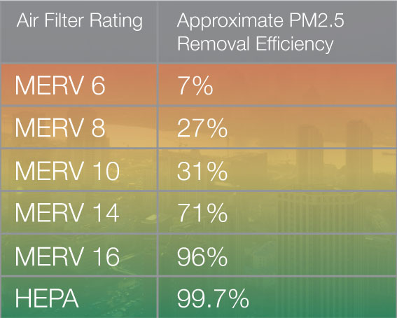 A MERV12 and higher filter is the minimum at which it starts to filter some PM2.5 out of the air, and even that could slow down the air coming from the HVAC. The downside of slowing down the air flow is that it could result in mechanical problems to the HVAC system as the MERV12 or higher filter gets more and more clogged.